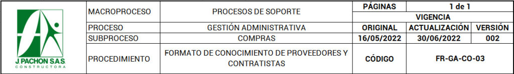J PACHON SAS lo invita a ser parte de nuestro banco de proveedores y a participar activamente en los procesos de contratación.